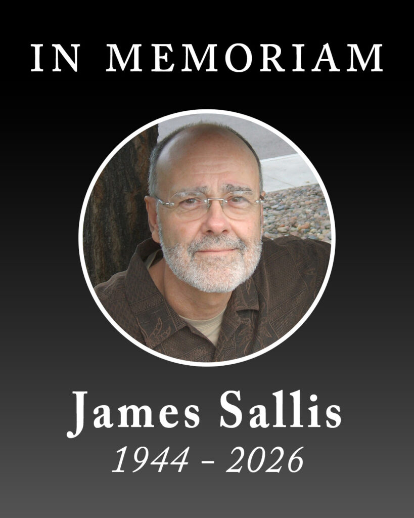 Soho Press is grieved to announce the death of author James Sallis, who passed away on Tuesday, January 27, 2026, peacefully, with his wife, Karyn, by his side, after a long illness. No funeral is planned. If you feel moved to donate in his memory, the family suggests the ACLU or the Humane Society as worthy charities that Jim valued. He was preceded in death by his parents, his brother (the philosopher John Sallis), and his son, Dylan. He is survived by his wife of 35 years, Karyn.